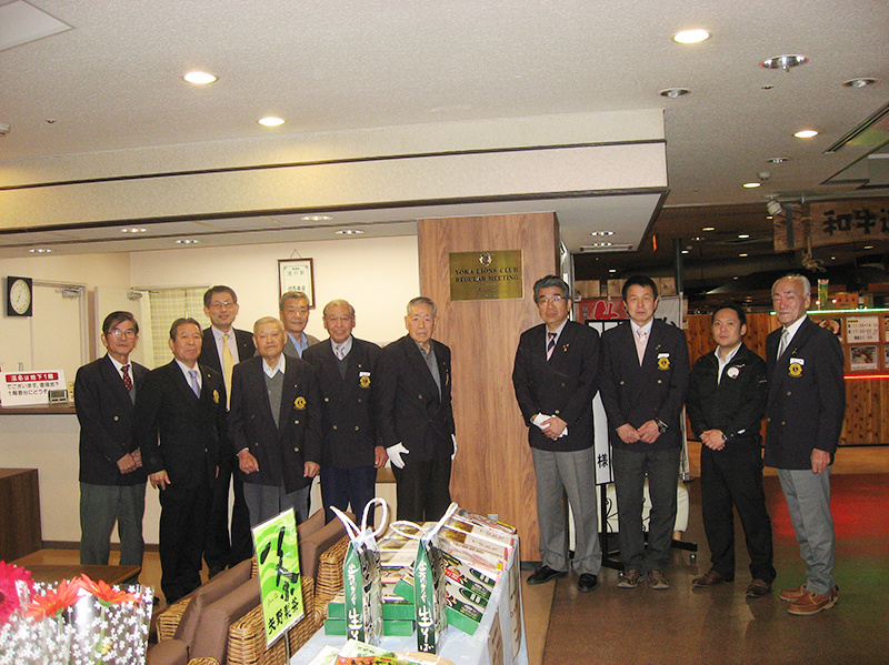 結成55周年を記念してライオンズクラブメンバーL田中の経営する「かねいちや」で開催、シンガーソングライター金山ゆいさんに花を添えていただきました。