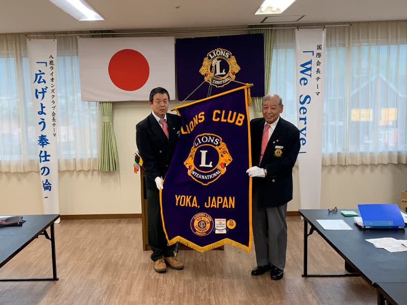 本年度会長L八木から次年度会長L松田へバトンタッチ。