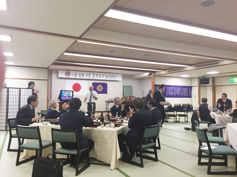 2017年度会長L神田から2018年度会長L八木へバトンタッチ。各表彰等が行われ和やかな懇親会へ。