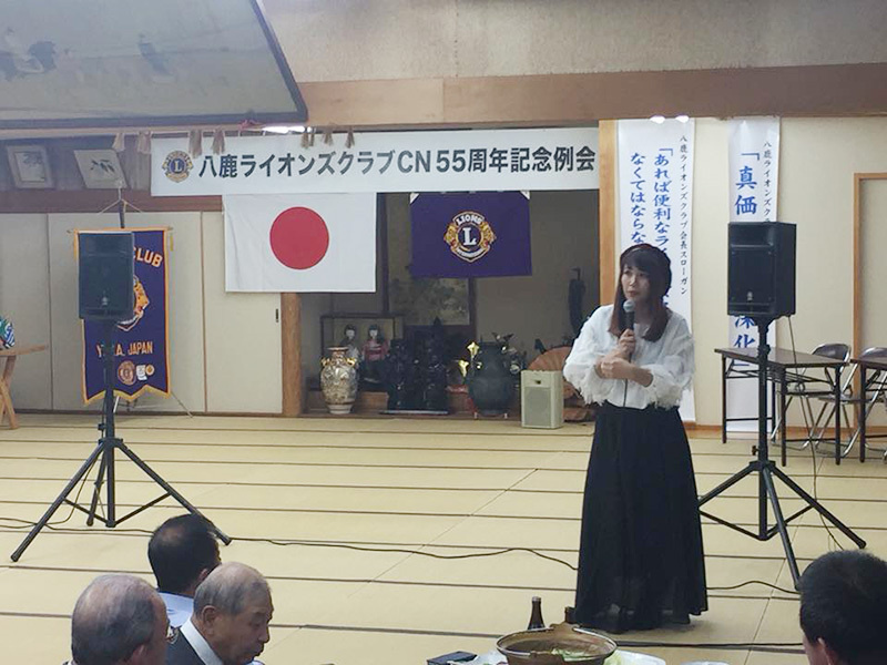 結成55周年を記念してライオンズクラブメンバーL田中の経営する「かねいちや」で開催、シンガーソングライター金山ゆいさんに花を添えていただきました。