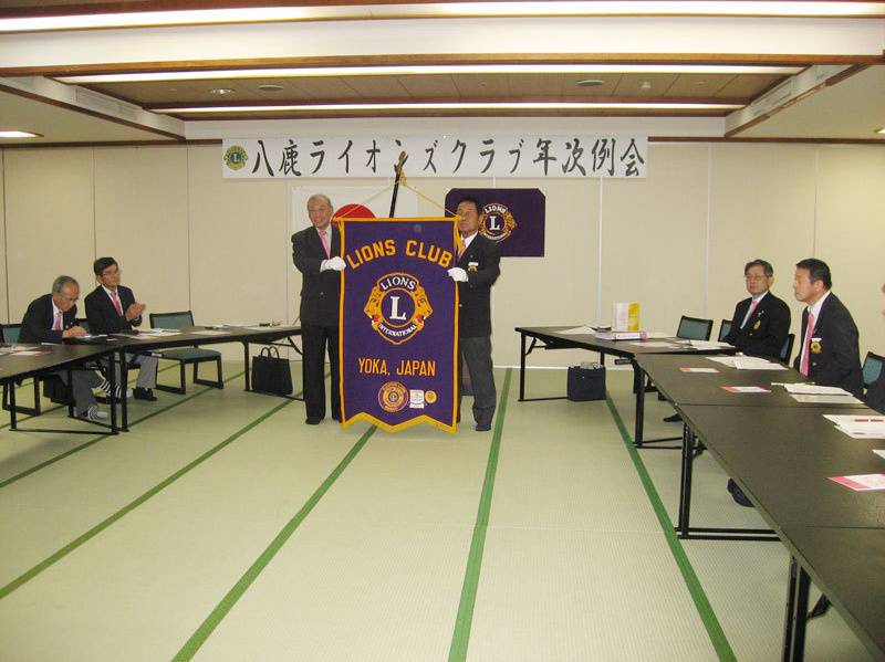 本年度会長L八木から次年度会長L松田へバトンタッチ。