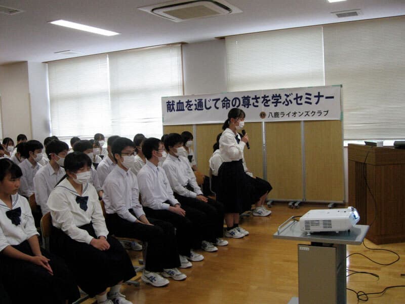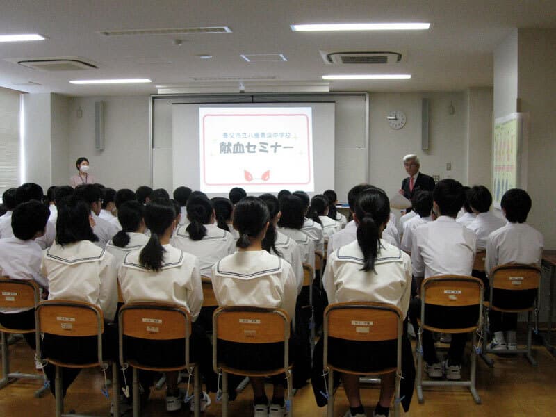 青少年育成セミナー(八鹿青渓中学校)「献血を通じて命の尊さを学ぶ」