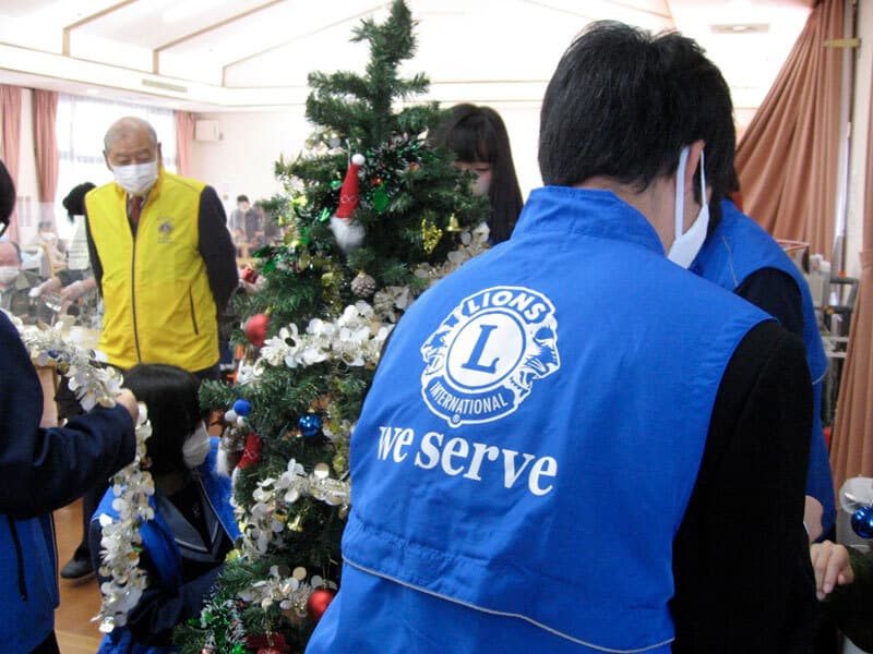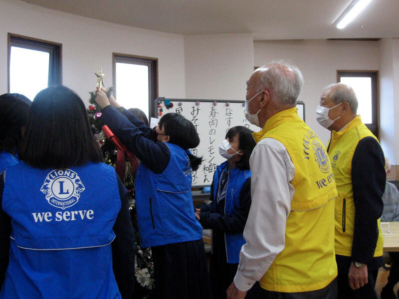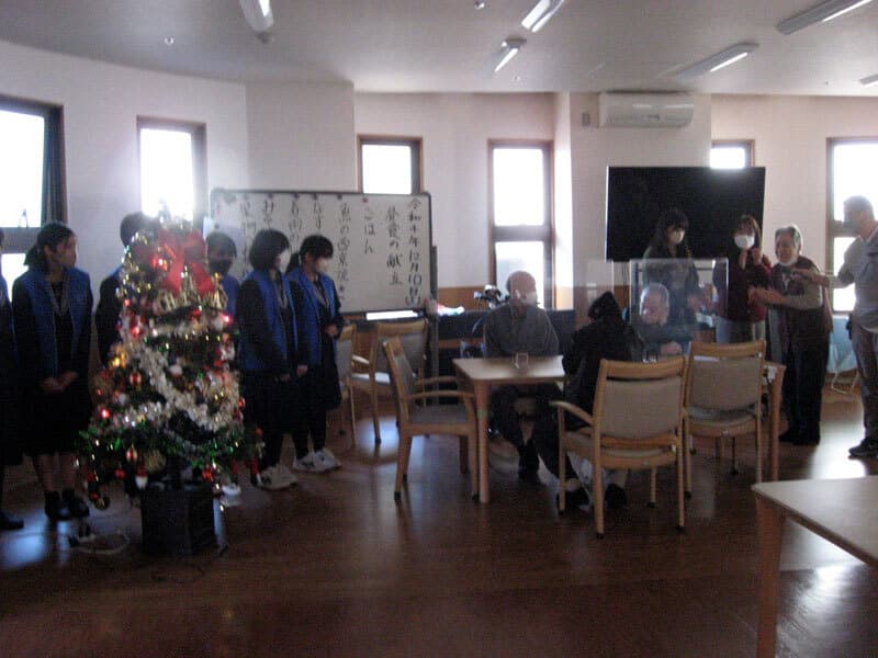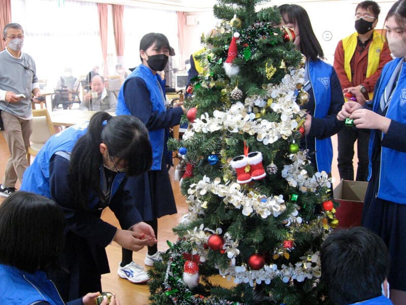 特別養護老人施設「かるべの郷」あじさい談話室にクリスマスツリーの飾付けをしました。